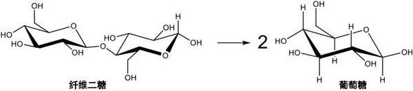 圖1:纖維二糖水解成葡萄糖。