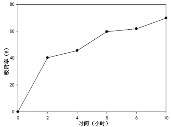 圖2:鋅離子的接觸時(shí)間對(duì)活性炭吸附的影響。