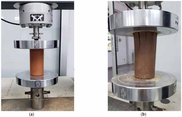 圖3:(a)活性炭試樣和(b)椰殼纖維試樣的UCS結(jié)果。