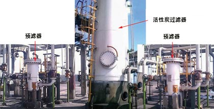 活性炭可以由椰子殼,褐煤,煤,瀝青和木質(zhì)材料等制成。源將確定其可吸附的污染物的吸附容量和尺寸分布。就配置而言,活性炭可以是粉末或顆粒狀的。活性炭過濾系統(tǒng)通常用于除去雜質(zhì),使得胺溶液可以適當(dāng)?shù)赜糜谟行コ廴疚。如果沒有從胺溶液中適當(dāng)?shù)爻ルs質(zhì),則在工廠中可能發(fā)生起泡,腐蝕和其它問題,導(dǎo)致相當(dāng)大的負(fù)面技術(shù)和經(jīng)濟(jì)效果。通常,瀝青類型的活性炭被選擇用于胺單元,因?yàn)槠湓谔季Я?nèi)具有小,中和大孔的平衡。這種分布通常最適合具有廣泛分子尺寸污染物分布的胺流。典型的活性炭過濾系統(tǒng)如圖2所示。