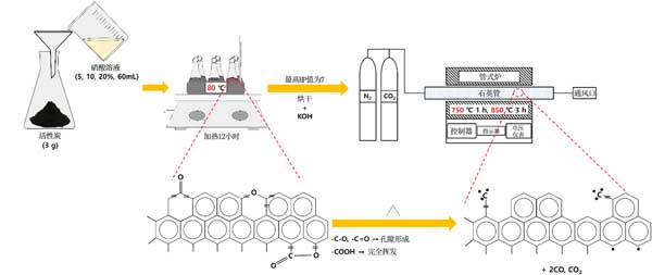圖1:通過(guò)硝酸處理和活化活性炭的程序和目的。