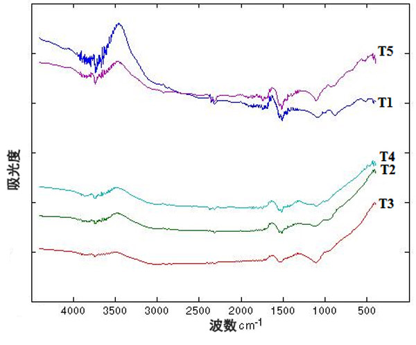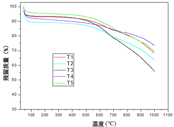 根據(jù)圖3,不同的處理導(dǎo)致熱分解曲線有所不同。此外,不同處理的殘留質(zhì)量也有所不同,處理T1,T4和T5呈現(xiàn)更高的殘留質(zhì)量,表明這些處理具有更高的耐熱性。處理T2和T3的殘留量較低,表明處理的耐熱性較低。此外,這些處理在后期殘留質(zhì)量之間存在重大差異而脫穎而出。根據(jù)處理(電擊時(shí)間),降解曲線的差異可能與表面上不同官能團(tuán)的存在有關(guān)。在熱過(guò)程中,由于存在的官能團(tuán),會(huì)形成不同的產(chǎn)物,從而導(dǎo)致更高或更低的質(zhì)量損失,因?yàn)榛钚蕴康臒岱纸夥磻?yīng)了其表面上官能團(tuán)的存在。然后,官能團(tuán)的類(lèi)型和數(shù)量都會(huì)影響熱重曲線。但是,由于表面官能團(tuán)的降解與其結(jié)構(gòu)不同,因此官能團(tuán)的類(lèi)型具有更大的影響,并且可以解釋處理之間的差異。