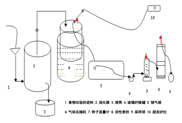 怎么證明能用活性炭來提純沼氣。首先使用牛糞作為起始劑,沼氣材料的主要成分是從食物垃圾和廚房垃圾中獲得的大米,魚,雞肉,蔬菜,豆腐,蔬菜皮和水果皮的混合物,然后將餐廚垃圾和牛糞1:1混合。吸附劑使用韓研椰殼活性炭,尺寸為8-30目。設(shè)備是一個1000升的玻璃纖維罐作為厭氧消化池,沼氣凈化系統(tǒng)設(shè)備系列圖如圖1所示。將裝有1000升和200升桶的桶上下顛倒放置在裝有水的桶上。倒置轉(zhuǎn)鼓的功能是手機沼氣,同時還充當蒸煮器的壓力控制器,以保持大氣壓。使用厭氧消化器連續(xù)放置一個月,生產(chǎn)的沼氣內(nèi)甲烷成分為65-69%。