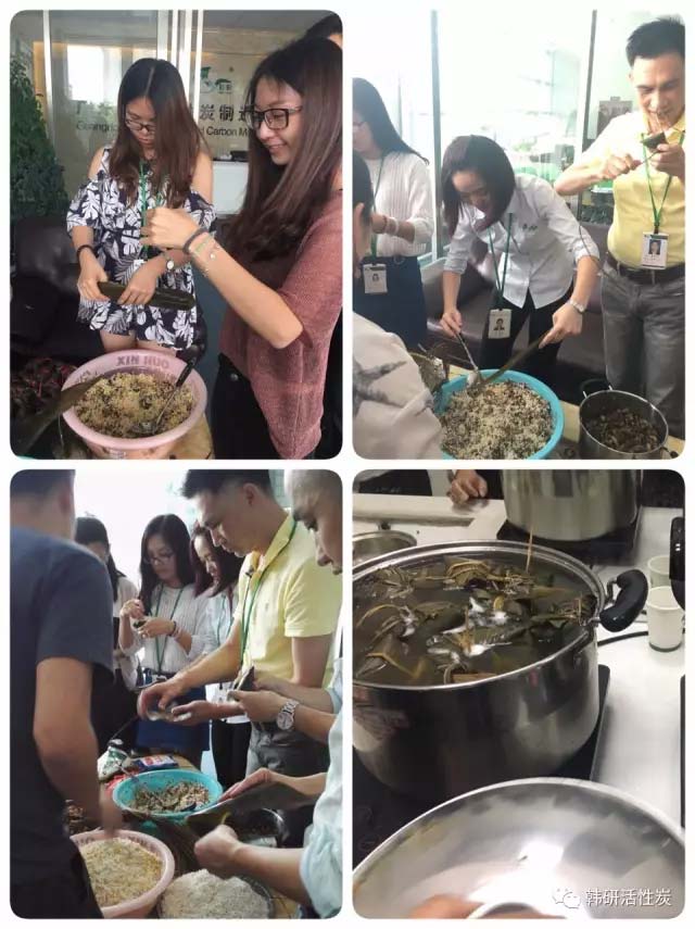 悠悠粽子香, 濃濃端午情,專注于活性炭的韓研人一個(gè)個(gè)爭(zhēng)先恐后地大顯身手,真別說(shuō),包粽子還真是一門技術(shù)活,男同胞和女同胞們進(jìn)行對(duì)抗PK賽,幾乎勢(shì)均力敵,但最后還是讓心靈手巧的女同胞們奪了冠。