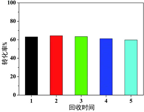 進(jìn)行回收試驗(yàn)以研究活性炭催化劑的異質(zhì)性和穩(wěn)定性。第一次催化反應(yīng)完成后,過濾回收活性炭載鉑催化劑(硫酸活化),用蒸餾水洗滌,55℃真空干燥12小時,重新用于第二次催化反應(yīng)。在另外三個運(yùn)行中實(shí)施了相同的操作。同時,在第一次運(yùn)行后,通過檢測回收的活性炭催化劑和濾液中的鉑量。圖3展示了回收試驗(yàn)的結(jié)果。觀察到甲基環(huán)己烷的轉(zhuǎn)化率在59.8-64.4%范圍內(nèi)有小幅波動,表明活性炭催化劑的活性在重復(fù)使用4次后幾乎沒有下降,表明活性炭催化劑具有良好的穩(wěn)定性。第一次運(yùn)行后,反應(yīng)中的鉑浸出量為0.33ppm。當(dāng)鉑催化劑從反應(yīng)體系中過濾出來時,在濾液中很少觀察到催化反應(yīng),這證明了活性炭載體上的鉑作為非均相活性位點(diǎn)。