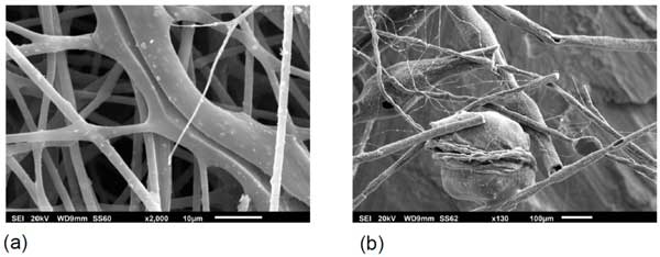 圖1:不同尺寸的氧化物顆粒/纖維(a)和復(fù)合纖維(b)的SEM圖像。