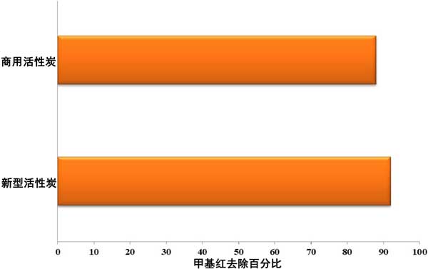 經(jīng)過批量吸附測試數(shù)據(jù)后,將新型活性炭的結(jié)果與當(dāng)?shù)乜捎玫纳逃没钚蕴窟M(jìn)行了比較。圖4表示與活性炭的比較實(shí)驗(yàn)數(shù)據(jù)。