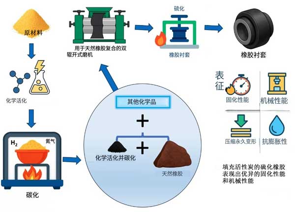 硫化橡膠襯套作為重要的機(jī)械減震元件,廣泛應(yīng)用于汽車、航空航天、機(jī)械制造等領(lǐng)域。然而,傳統(tǒng)橡膠襯套在生產(chǎn)和使用過程中存在揮發(fā)性有機(jī)物釋放、力學(xué)性能不足、阻燃性能欠佳等問題。近年來,隨著環(huán)保要求的提高和產(chǎn)品性能需求的提升,活性炭作為一種多功能填料在橡膠制品中的應(yīng)用受到廣泛關(guān)注;钚蕴坎粌H具有發(fā)達(dá)的孔隙結(jié)構(gòu)和巨大的比表面積,還表現(xiàn)出優(yōu)異的吸附性能和補(bǔ)強(qiáng)效果,為硫化橡膠襯套的性能優(yōu)化提供了新的解決方案。