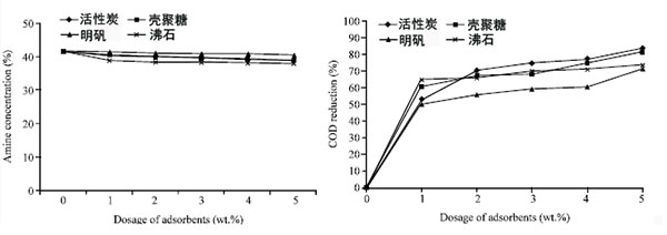該單乙醇胺廢水含有許多類型的分子和離子。因此,某些分子和離子基于其特性被吸附到這些吸附劑表面上。活性炭具有疏水表面,有利于空氣中的有機物。同時沸石是親水性吸附劑。吸附劑的這些特性有助于降低COD水平。從結果可以看出,與活性炭和沸石相比,活性炭是降低COD水平的效果好的吸附劑。