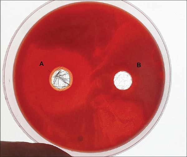 圖5:(A)與木炭刷毛有關(guān)的10毫米抑制區(qū)。(B)發(fā)現(xiàn)與非炭鬃相關(guān)的3mm抑制區(qū)。