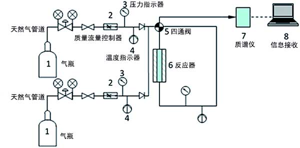 在我們之前的工作中開發(fā)了吸附裝置來測(cè)量氣體穿透曲線(圖1)。它由三個(gè)主要部分組成:準(zhǔn)備部分、吸附段和分析部分。在氣體制備部分中,吹掃氣體是高純度Ar氣體(99.999%),其用于在引入烴氣體之前通過惰性氣體管線和反應(yīng)器吹掃系統(tǒng)。吸附部分使用丙烷或乙烷在氦氣或人造氣體混合物,其通過燃料氣體管線和反應(yīng)器。這兩條線都碰到了一個(gè)四端口交叉閥。整個(gè)裝置等溫(~26℃)。閥門位置,氣體流量,壓力和溫度完全自動(dòng)化,并由內(nèi)部程序控制。通過質(zhì)譜儀分析和量化來自反應(yīng)器出口的氣體。