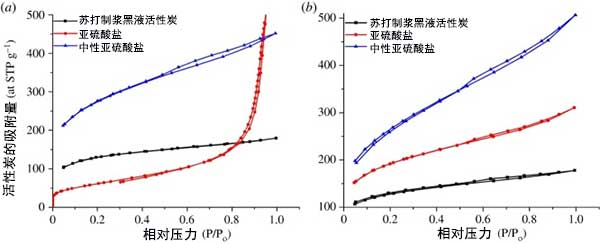 圖1:氮在各種活性炭上的吸附等溫線。