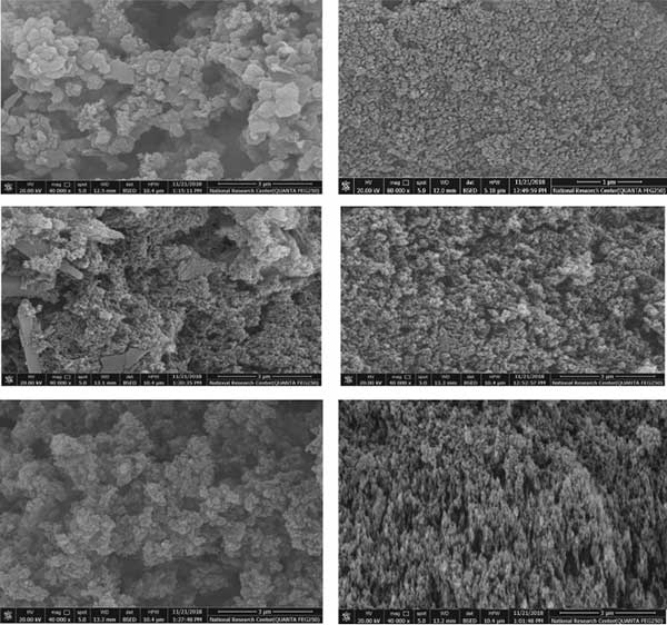 對(duì)于SEM研究的情況,活性炭的形態(tài)顯示出不均勻和粗糙的表面(圖2)。在放大倍數(shù)為40000時(shí),可以看出表面被硅磷酸鹽晶體覆蓋。來(lái)自稻草的蘇打制漿黑液的活性炭具有較高的硅磷酸鹽晶體。然而,使用中性亞硫酸鹽制漿黑液的活性炭中只有較低的晶體。